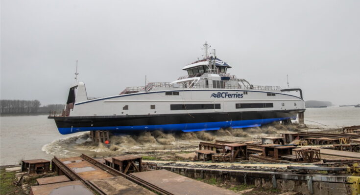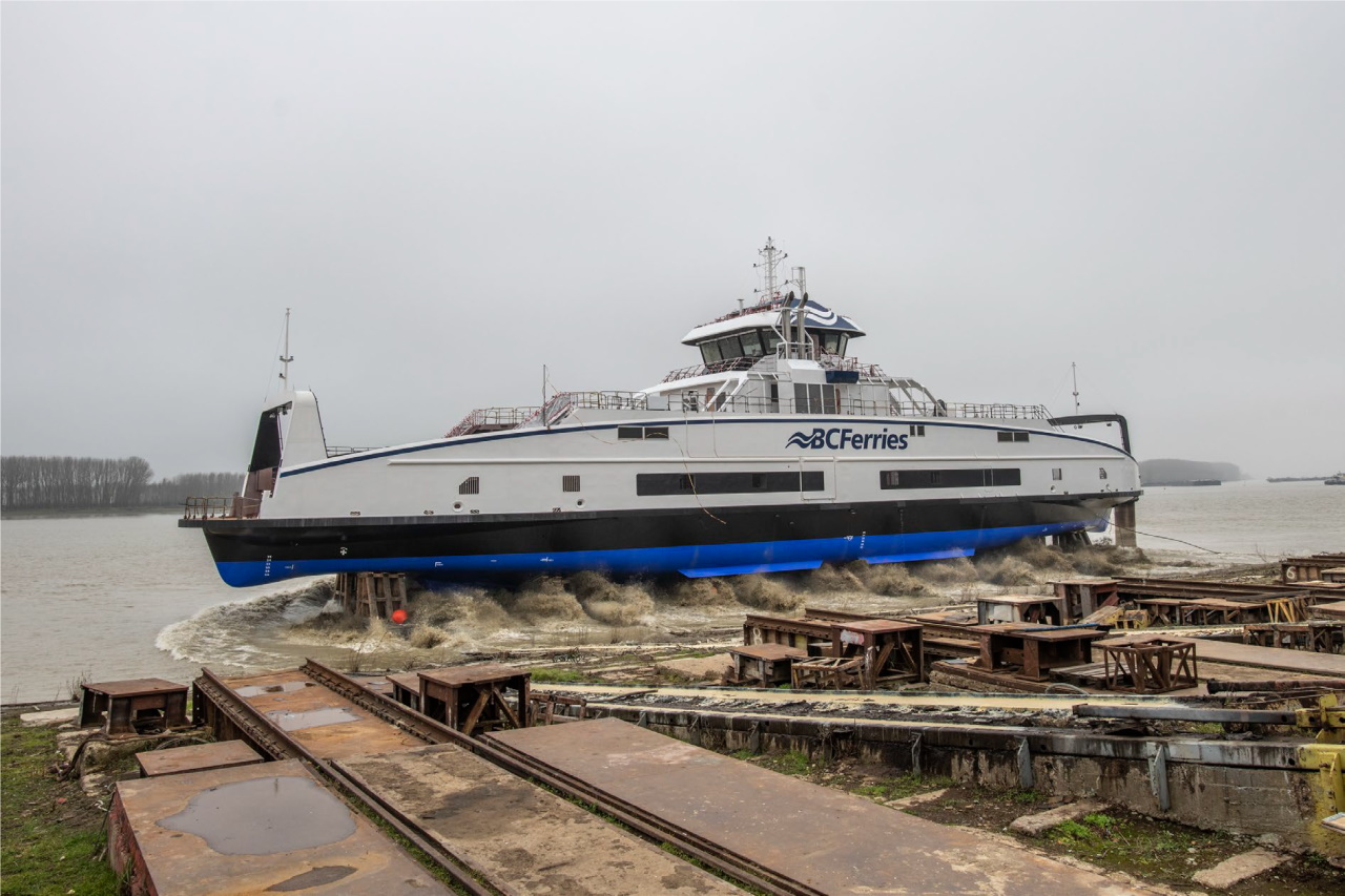 Den fjerde Island Class færge til det canadiske rederi BC Ferries, blev torsdag d. 17. december søsat fra Damen Shipyard’s værft i Rumænien. Færgen som endnu ikke har fået et navn, skal efter planen på prøvesejlads i april 2021. Den vil så i efteråret 2021, blive fragtet til Point Hope Maritime i Canada, hvor den sidste finish vil blive lavet på den.