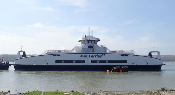 Den sjette og sidste Island Class færge til det canadiske rederi BC Ferries, blev torsdag d. 22. april søsat fra Damen Shipyard’s værft i Rumænien. Færgen som endnu ikke har fået et navn, skal efter planen på prøvesejlads i august 2021. Den vil så i slutningen af 2021, blive fragtet til Point Hope Maritime i Canada, hvor den sidste finish vil blive lavet på den.