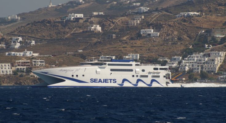 CHAMPION JET 1 afgår fra Mykonos d. 30/5-2017. Foto: Michael Koefoed-Hansen