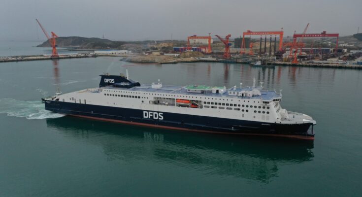 CÔTE D’OPALE er den 5 færge i serien af pt. 9 E-Flexer færger, som Stena RoRo får bygget på det kinesiske værft CMI Jinling (Weihai).