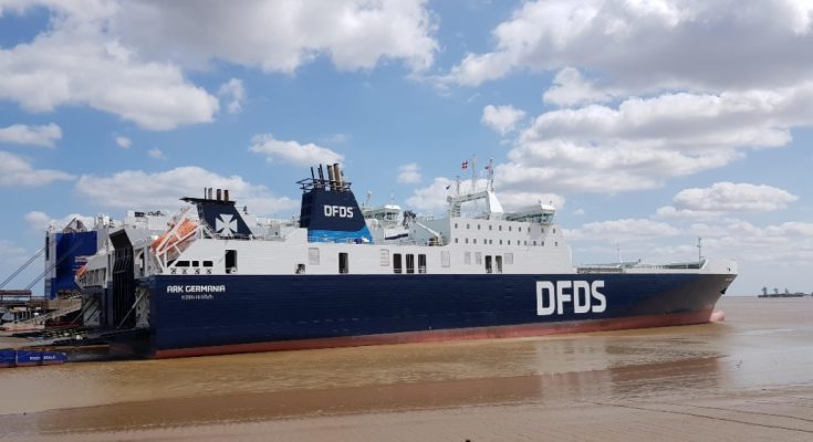 DFDS tester i øjeblikket et nyt skorstensdesign på ARK GERMANIA. Det nye design indeholder navnet DFDS med en lyseblå bølge under DFDS og ikke mere malteser korset, da man gerne vil kunne bruge det samme design på alle markeder.