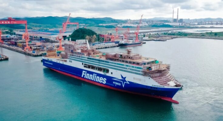 Tirsdag d. 30. august var der søsætning af Finnlines nye RoPax færge FINNSIRIUS, på det kinesiske værft China Merchants Jinling Shipyard (Weihai).
