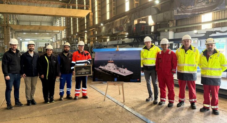 Første stålplade skåret til Fjord1 nybygning. © Tersan Shipyard