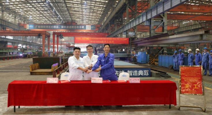 Første stålplade til MOBY MAGIC. © Guangzhou Shipyard International