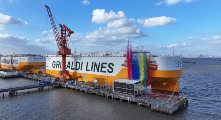 Onsdag d. 22. oktober var der navngivning og levering af GRANDE MELBOURNE til Grimaldi Lines. GRANDE MELBOURNE er bygget på det kinesiske værft Shanghai Waigaoqiao Shipbuilding Company (SWS) og er den 3. ud af 7 Pure Car & Truck Carrier (PCTC) skibe, som rederiet får bygget på værfter ejet af China State Shipbuilding Corporation (CSSC).