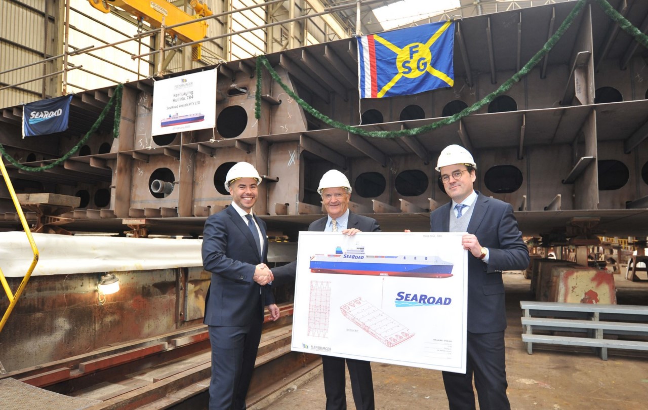 Mandag d. 27. februar, var der køllægning af tasmanske SeaRoad’s nye RoRo færge SEAROAD I, på det tyske værft Flensburger Schiffbau-Gesellschaft (FSG).