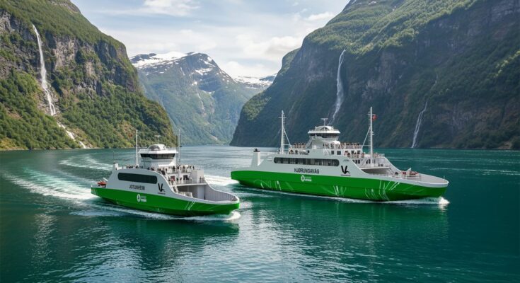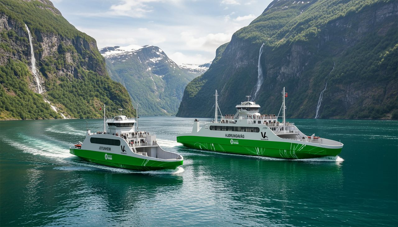 Det lille norske rederi Vestlandske er gået i gang med at ombygge de to færger HJØRUNGAVÅG og JOTUNHEIM til elektrisk drift. De to færger vil tilsammen få en batterikapacitet på 17 MWh, som er tilstrækkelig kapacitet til en dags sejlads på sommerruten Geiranger – Hellesylt, hvor mulighederne for at lade under dagens sejlads er begrænset.